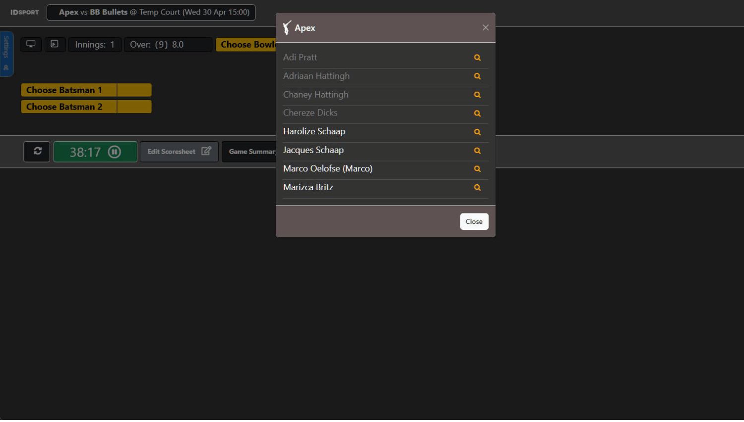 An intuitive and user-friendly scorekeeping interface designed for cricket and other single-goal sports (such as netball), with an automatic scoreboard switching feature between Cricket and Single Goal modes.